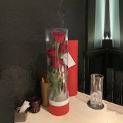 濃赤色の最高級ラッピングチューブに梱包されています。食事中、テーブル上に飾れて、持ち帰る際には簡単に再梱包できます。ラッピングチューブには水分ジェルが組み込まれるので、持ち帰ってそのまま部屋に飾ることができます。飾られたバラは、見るたびに、贈り主の思いやりを思い出させてくれるでしょう。